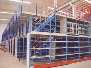 此類系統(tǒng),通常利用中型擱板式貨架或重型擱板式貨架作為主體和樓面板的支撐(根據(jù)單元貨架的總載重量來決定選用何種貨架),樓面板通常選用冷軋型鋼樓板、花紋鋼樓板或鋼格柵樓板。此類系統(tǒng)在汽車零部件領(lǐng)域、汽車4S店、輕工、電子等行業(yè)有較多應(yīng)用。