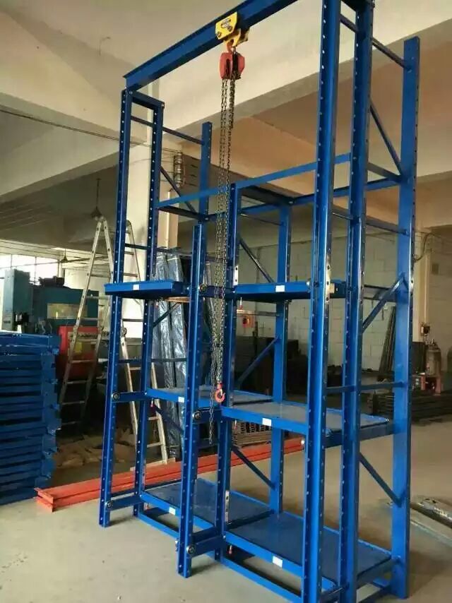 模具貨架又稱模具架或抽屜式貨架,主要存放各種模具物品,根據(jù)層載能力要求分為輕型模具貨架和重型模具貨架。貨架頂部可配置移動(dòng)葫蘆車,以方便模具的起吊。