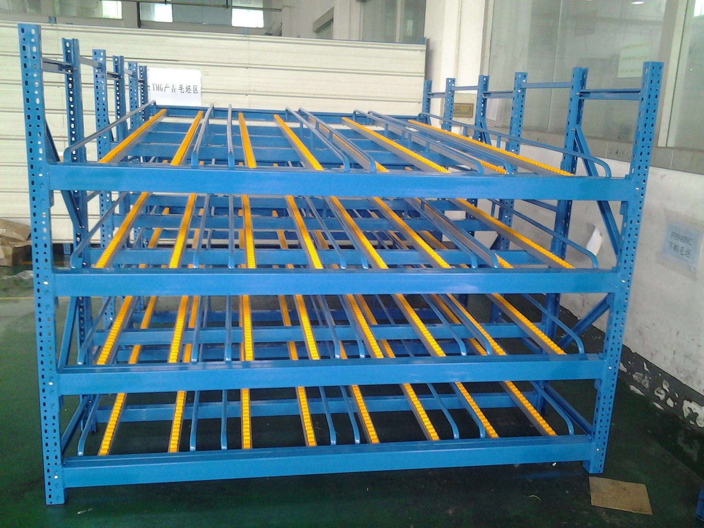 流利式貨架廣泛應用于制造業(yè),商業(yè),配送,裝配車間以及出貨頻率較高的倉庫流利式貨架:采用輥輪鋁合金,鈑金等流利條,利用臺架自重實現先進先出,存儲方便,適用于裝配線兩側配送等場所。