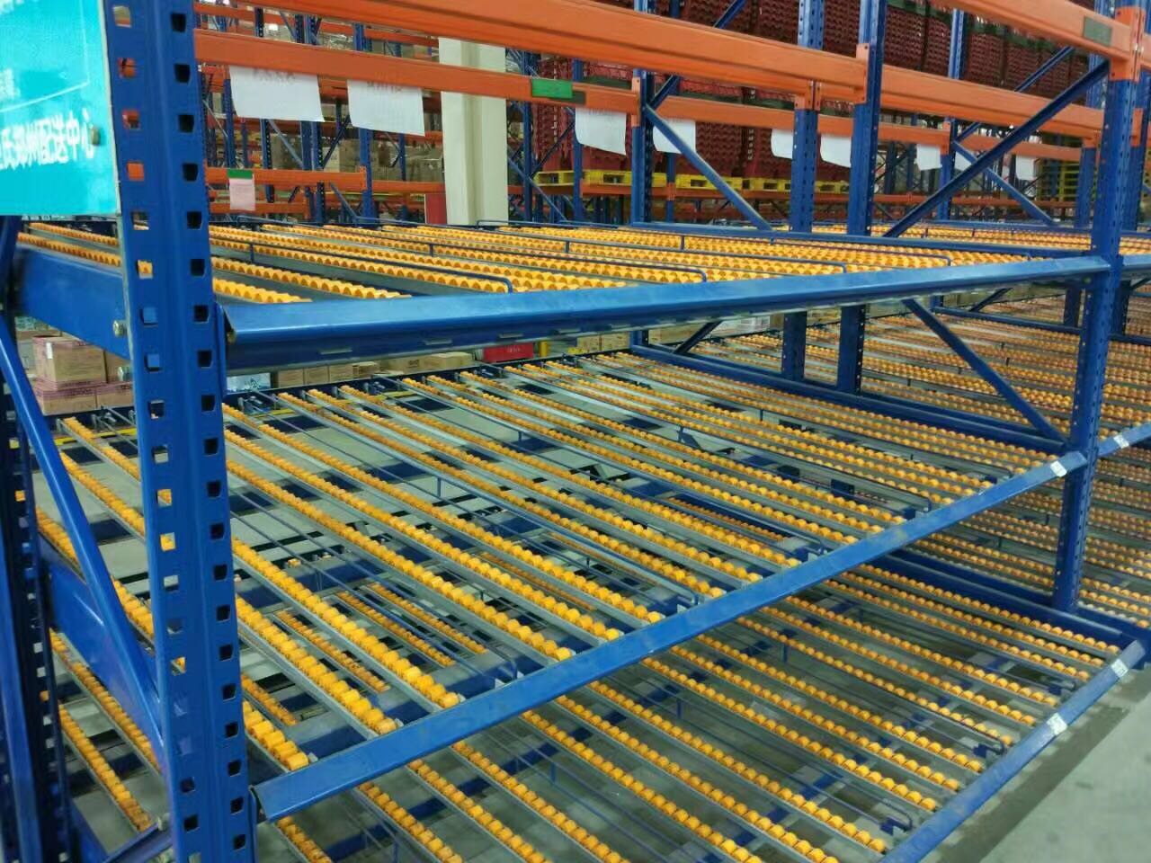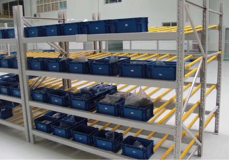 流利式貨架廣泛應(yīng)用于制造業(yè),商業(yè),配送,裝配車間以及出貨頻率較高的倉庫流利式貨架:采用輥輪鋁合金,鈑金等流利條,利用臺架自重實(shí)現(xiàn)先進(jìn)先出,存儲方便,適用于裝配線兩側(cè)配送等場所。